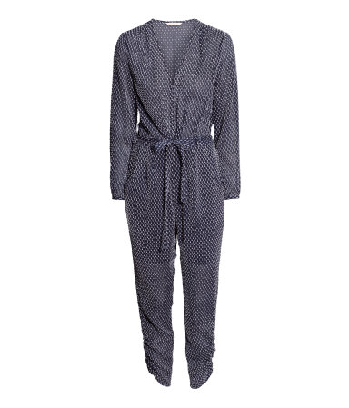 Selena posted a photo of herself and friends on March 16, wearing an H&M Textured Jumpsuit $69.95. She wore the same jumpsuit for an interview for the iHeart Radio Music Awards.The long-sleeved jumpsuit is in textured, airy chiffon with a tie belt at the waist, hook-and-eye fasteners at the top, a zip fly, buttons at the cuffs and elastication at the side of the hems. Lined with a pair of short shorts.