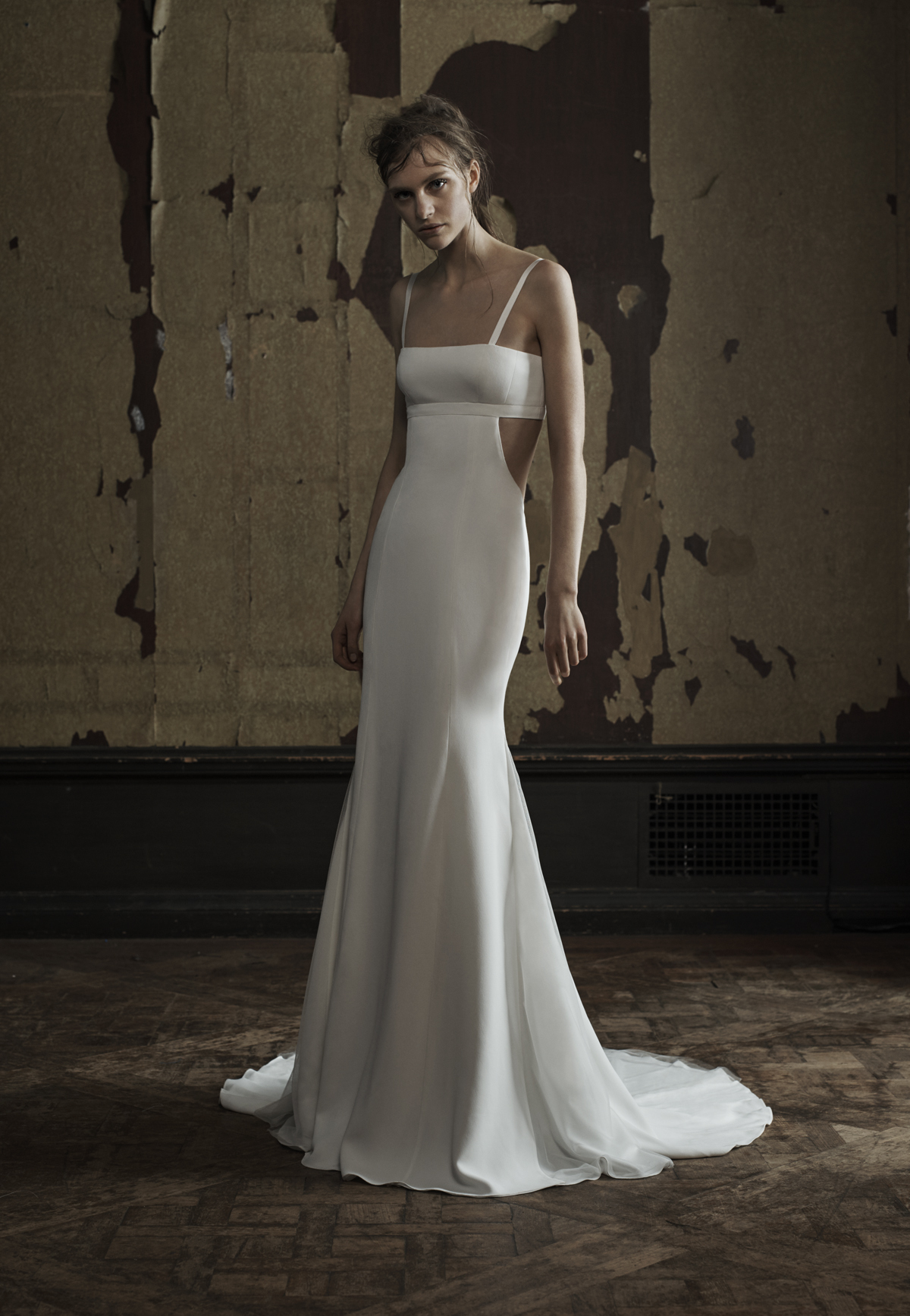 Selena was wearing a bespoke ivory silk crepe Vera Wang gown with black silk tassel accents. The dress below is from Vera’s Spring 2016 Wedding collection, and clearly influenced the design for Selena.