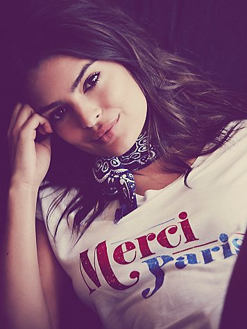 Selena accessorised with a Free People Vintage Bandana $18 in Navy (which she also wore with her new grey jumpsuit)
