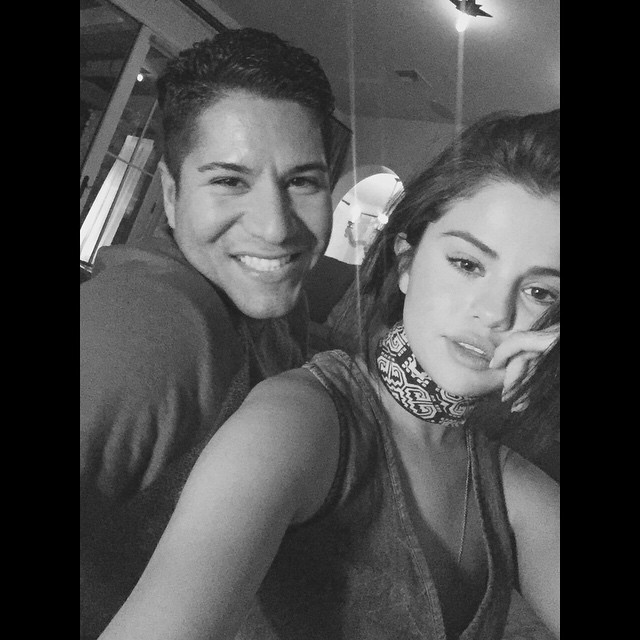 Selena really does love her jumpsuits! Here she is wearing a denim jumpsuit where the back can be worn in two ways.
