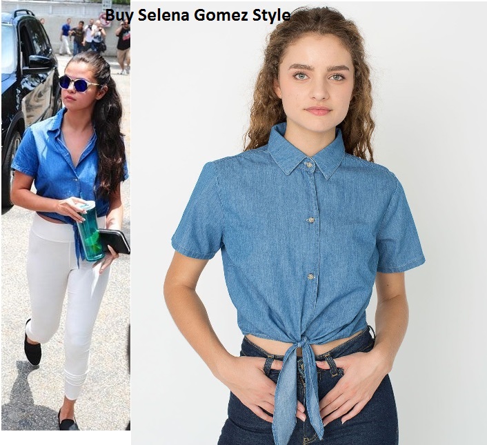 Selena was wearing an American Apparel Denim Mid-length Tie-up Blouse in Dark Wash Denim $46.