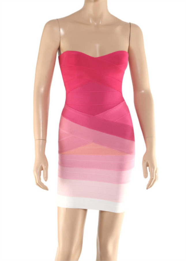 Selena was wearing a Strapless Sweetheart Pink Ombre Bandage Dress $99