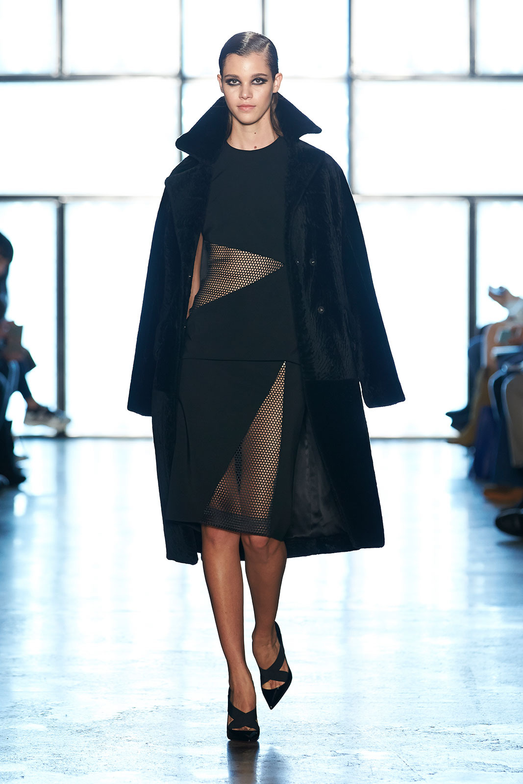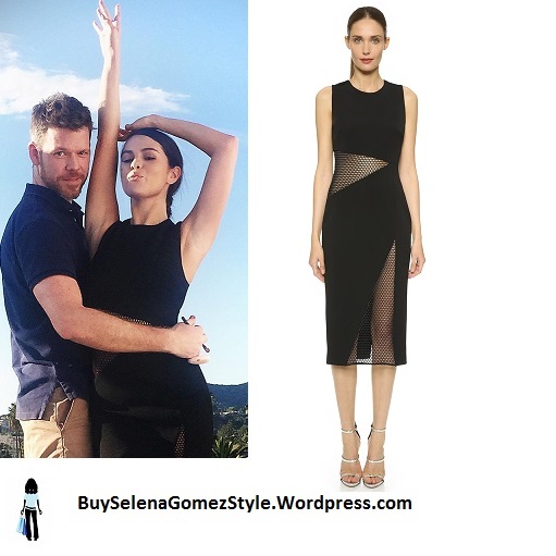 Selena is wearing a Cushnie et Ochs Mesh Panel Sheath Dress $1,595 in Black, from their Fall 2015 collection.