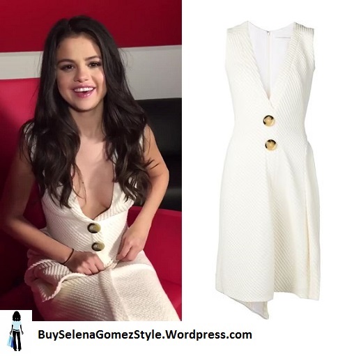 Selena looked stunning wearing a Victoria Beckham V-Neck button Dress $2,800 in White.