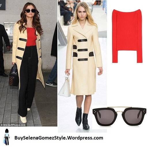 Selena’s coat is from the Louis Vuitton AW 15 collection. A gorgeous military style coat that is so stylish.