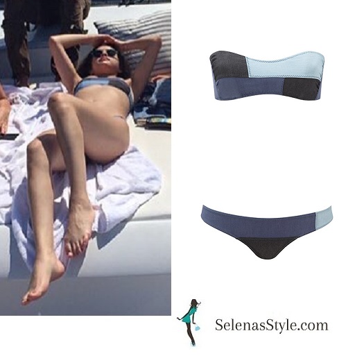 Selena was also snapped relaxing on the yacht on Sunday 12th June wearing this Lisa Marie Fernandez Nat Patchwork Denim bikini $350.