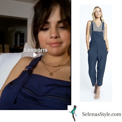 Selena is wearing Karen Zambos Overalls $196 in Indigo. They are also available in Black, Wine and Khaki.