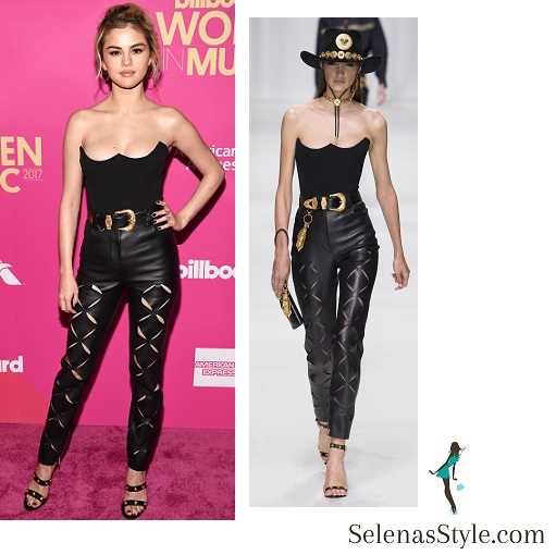 Selena Gomez Fierce in Cut Out Leather Pants at Billboard Women in Music 2017