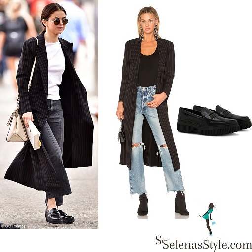 Selena Gomez Leaves Set in a Pinstripe Coat in New York