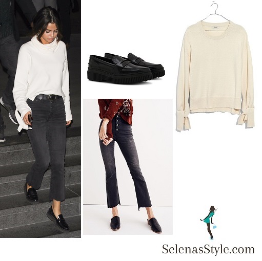 Selena Gomez Cream Sweater and Black Jeans joins Justin Bieber at Hillsong Church