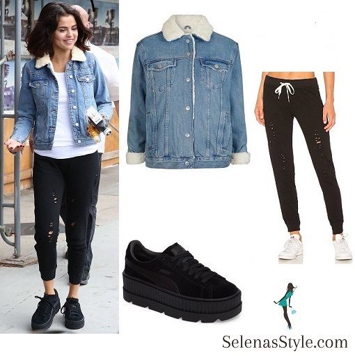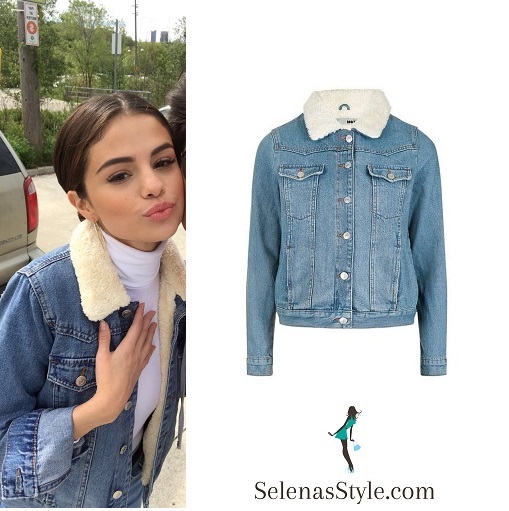 Selena Gomez Denim Jacket with Borg Collar